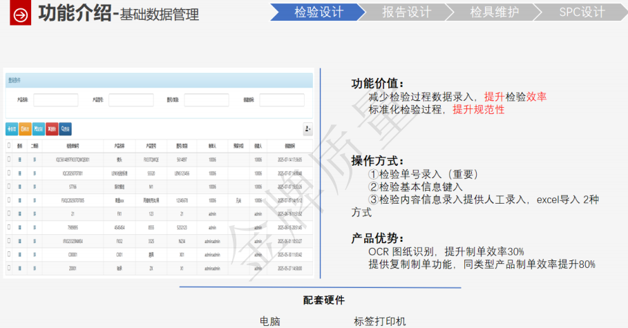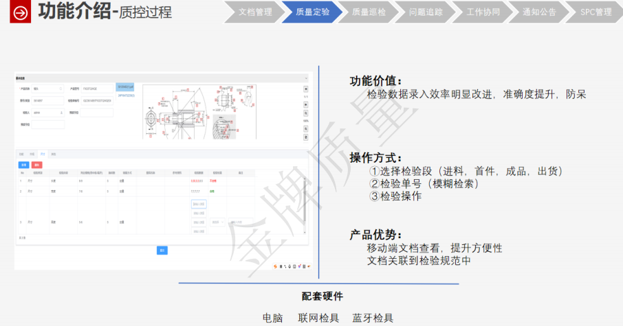 质匠质检系统—提升整体30%以上效率,专为制造企业设计的质量数字化管理平台。系统集成检验管理、问题追踪、SPC分析、移动巡检等功能,支持OCR识别、蓝牙检具对接,实现检验效率提升10倍、报告制作时间缩短90%。支持多端协同,打通ERP/MES,推动质量问题闭环处理,帮助企业低成本、高效率构建数字化质检体系,实现质量数据透明化、管理决策智能化。