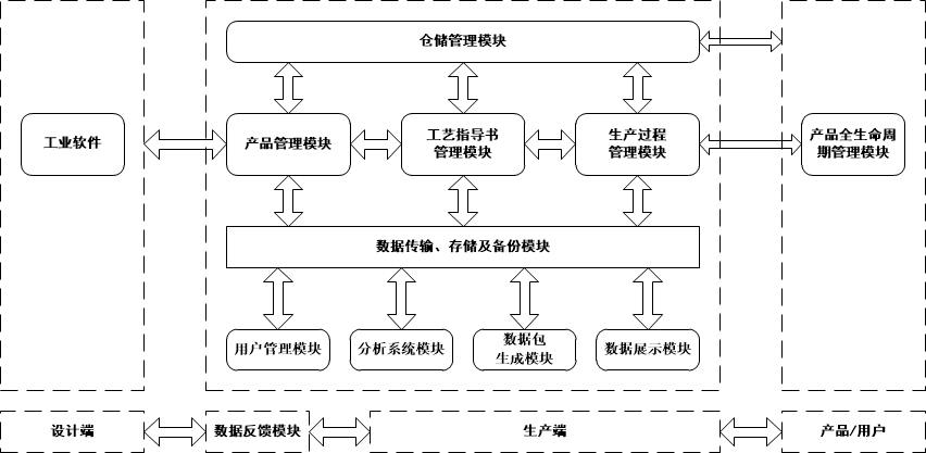 行波管数字化制造信息管理系统采用以“设计”为核心、将设计与制造融合的数字化制造架构,衔接设计端和生产端。该方案集成了数据传输、存储、用户管理、仓储管理、产品管理、电子化生产工艺指导管理、生产过程管理、数据分析等多个功能模块,实现了对空间行波管生产全过程的监控和管理。