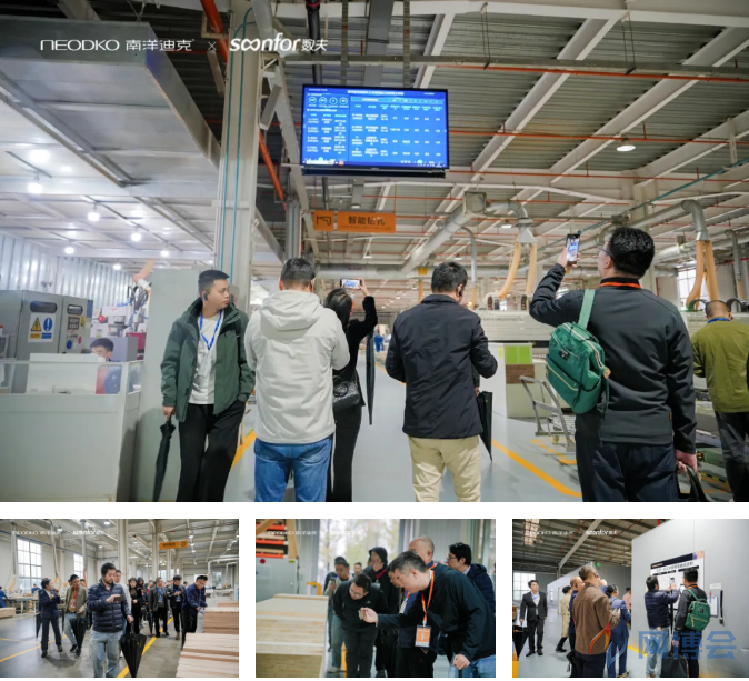 整洁有序的现代化车间中,大家实地观摩了从客户订单接入、智能拆单、柔性排产,到自动封边、智能分拣、物流追踪,全流程数字化闭环在此真实上演。企业家们驻足于MES系统终端前,亲手扫码追溯一块木材的全生命周期,亲身体验“一个指令驱动千台设备”的协同之美。
