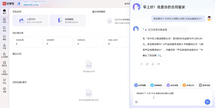 e签宝提出“统一、智能、互信”的全球签署网络理念,通过签管一体化AI合同平台,帮助企业实现合同全生命周期的数字化管理。