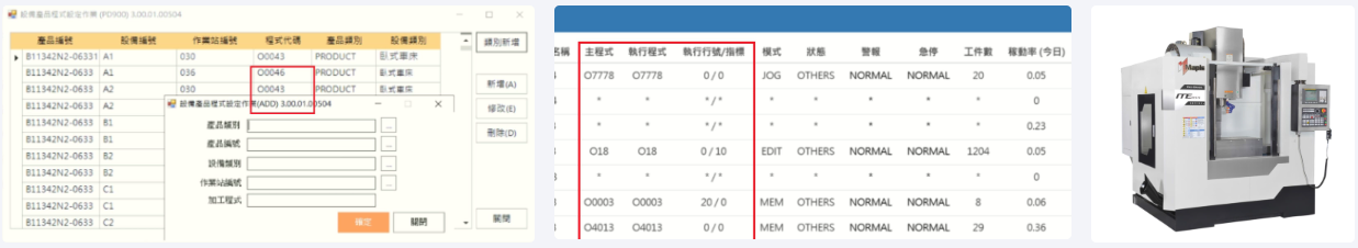透过事前制造现场主管绑定品项对应作业站,对应设备的加工程序设定。