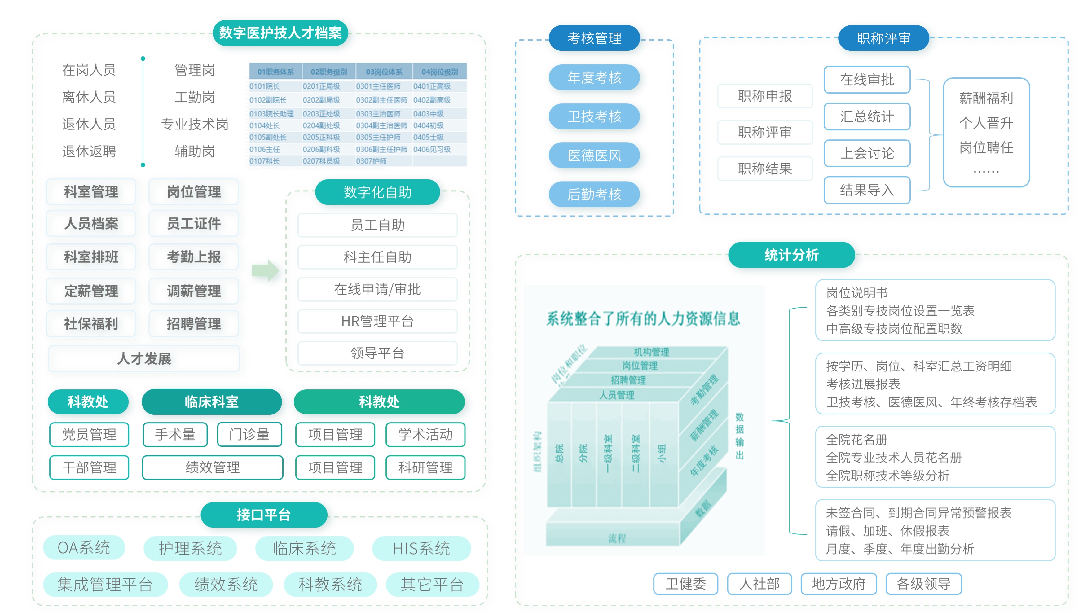 从考评发起、自评、他评、多渠道评价的结果综合、结果输出、报告等环节的闭环管理,提升医院各类考核(评)的管理效率,确保流程标准、资料完整高效归档