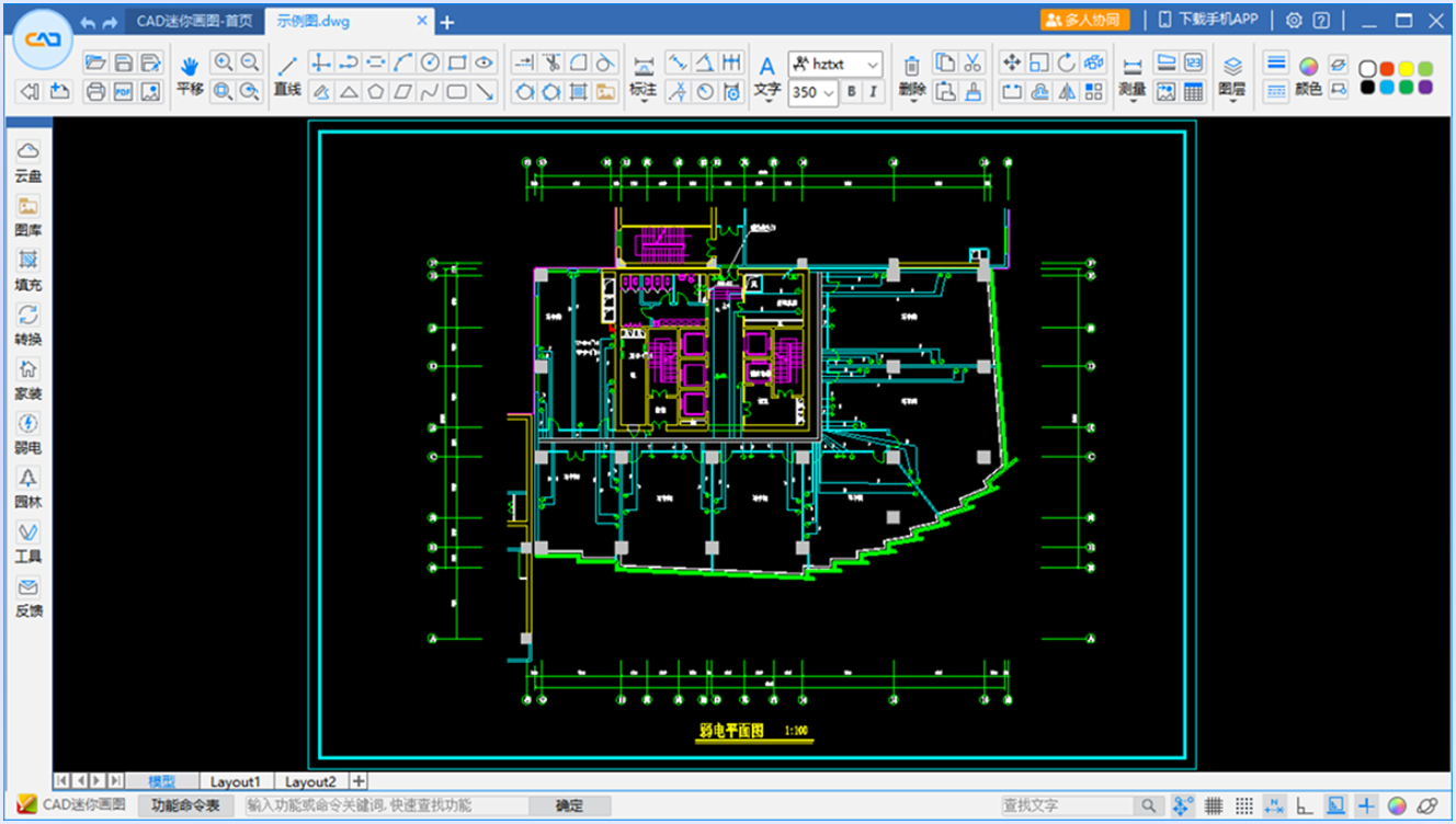 直线、圆、矩形、多段线等,标注长度测量面积一应俱全