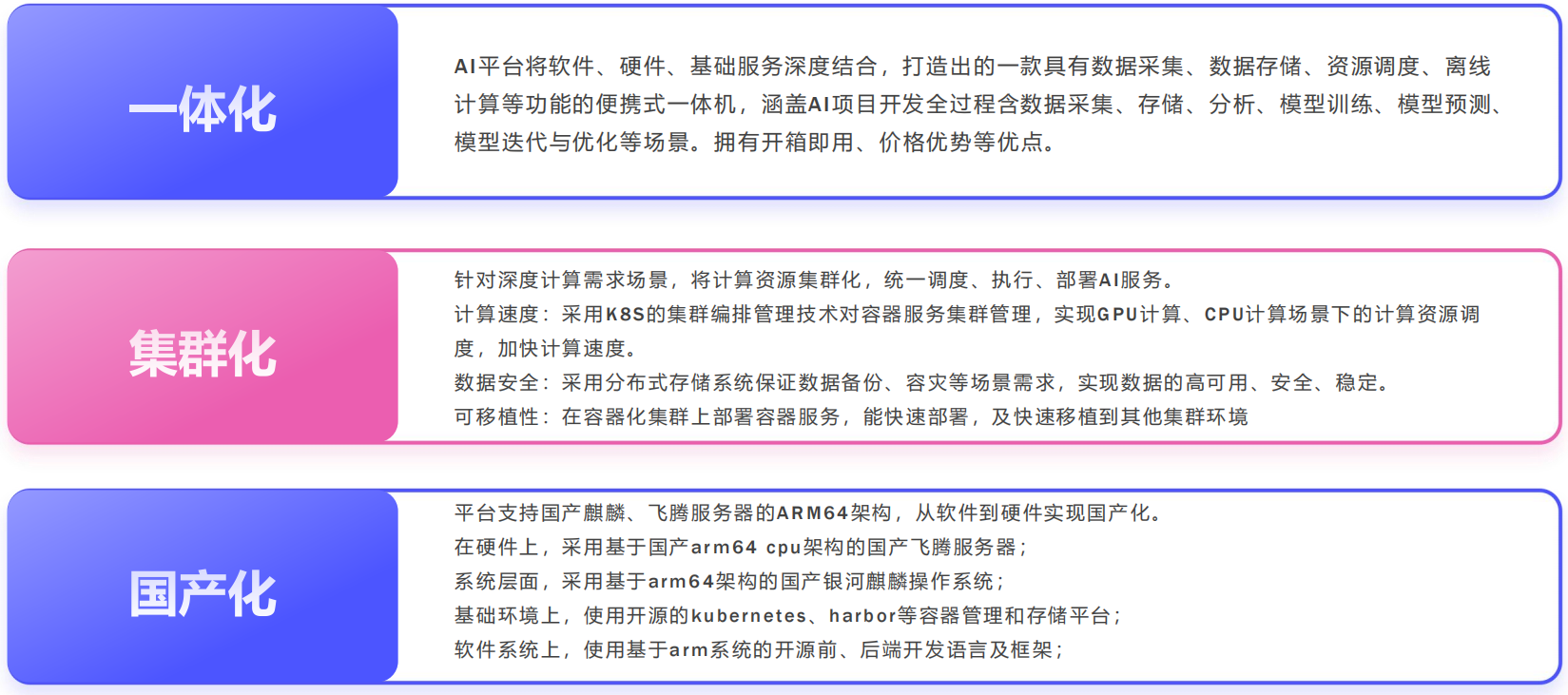 人工智能开发平台是面向开发者的一站式AI开发平台,针对了政府、企业用户及集团用户的大量人工智能算法学习、训练、模型服务场景一系列需求,提供了项目管理、数据采集与存储、数据标注、离线及在线训练、模型深度分析、结果展示、模型部署等功能。实现了AI项目统一分类管理、不同用户相互隔离,环境自动配置、在线训练模型的效果,覆盖了AI开发全过程。