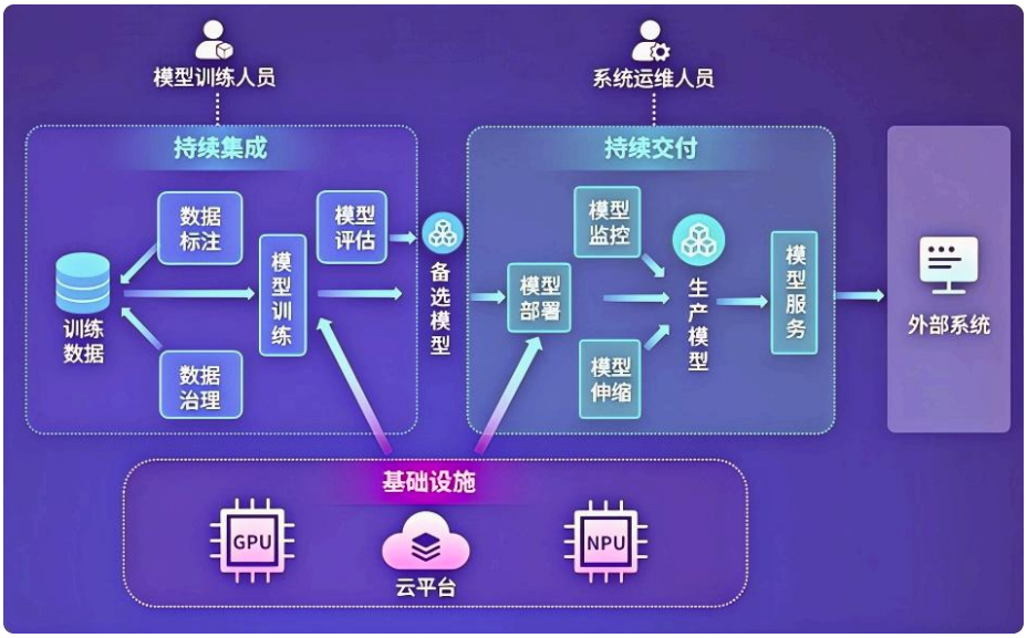 大模型训练(及服务)平台集成了数据管理、模型管理、CI/CD流程编排、GPU/NPU资源调度、自动伸缩等能力和相关最佳实践,为大模型的训练和服务提供了全面支持。该平台通过自动化和智能化的管理手段,显著提升了模型训练的效率和质量,并降低了服务成本。