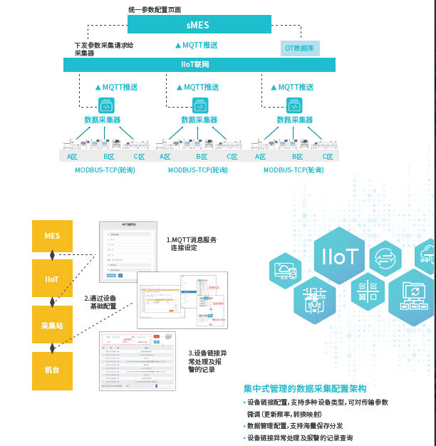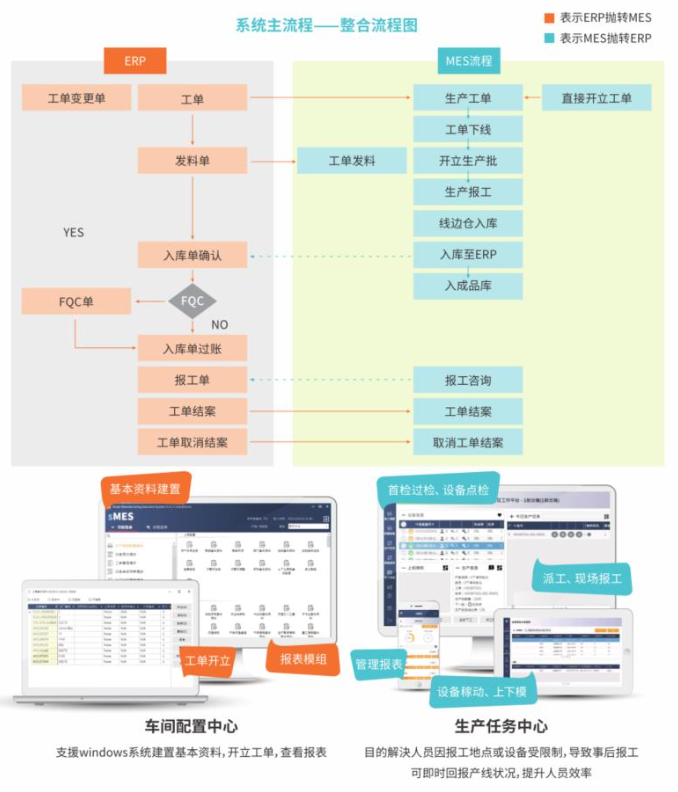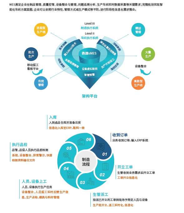 MES满足企业在制品管理、品质控管、设备整合与管理、问题追溯分析、生产车间即时资料收集等关键需求;完整规划实现智能化车间方案蓝图,企业可以依照行业特性、管理方式或生产模式等不同,进行阶段性资讯化需求整合。