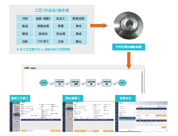 以更直觉且弹性的工艺配置,实现各厂区弹性化的柔性生产,能支持不同的产品或者生产过程中,需要快速置换或添加工艺的变化,实现低代码易配置的生产执行系统。