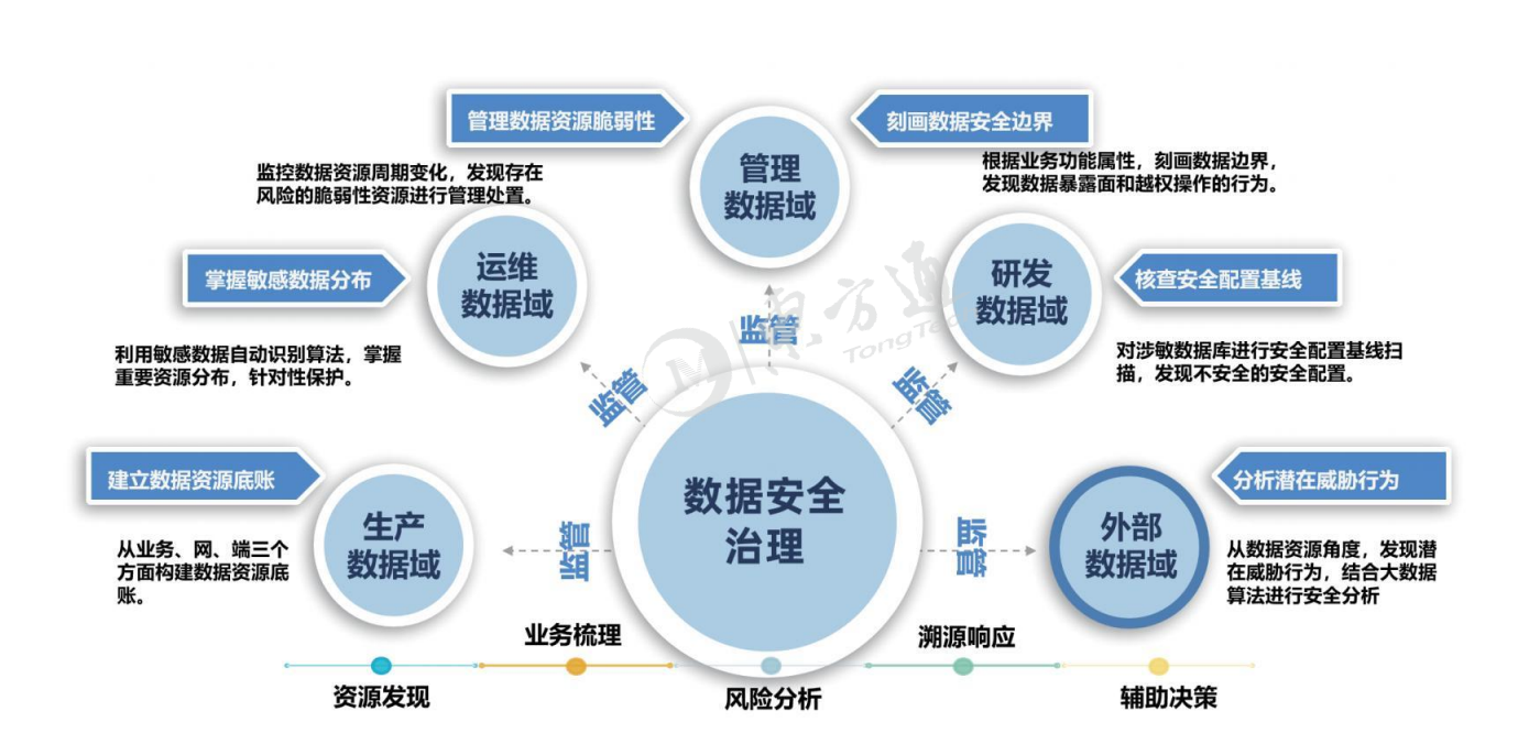 以业务数据风险及数据流动的特性出发,为企业数据开放、共享、使用、处理等数据活动提供实时安全风险识别、预警以及协同处置的能力。