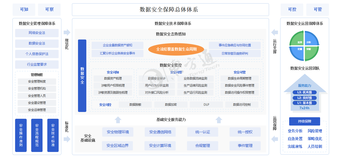 在数据安全运营保障体系方面,东方通提供专业的数据安全运营团队提供数据分析、风险管理、应急处置、策略优化等运营服务,全方位保障企业数据安全运营环境。