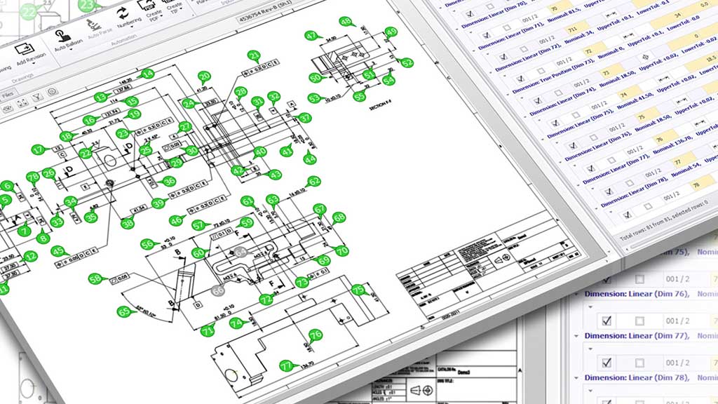 直接点击自动识别并导出所有的尺寸和形位公差,几分钟内自动生成气泡图和零件的全要素清单。