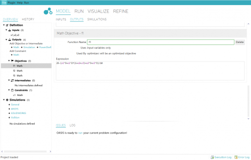 OASIS奥希思的问题定义模块简单易用,可以快速简单地定义优化设计问题。由于Babel语言的支持,可以灵活快速地输入公式,并伴有内置的语法高亮显示和表达式检验。