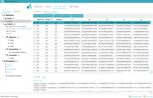 OASIS奥希思可以把优化过程中的数据全部记录在结果列表里,且每一组数据无缝地和可视化系统对应起来。也可以对数据进行排序移动,增加对设计问题本身的理解。亦可检验结果列表当中的任意一组数据,自动重新进行仿真优化设计。