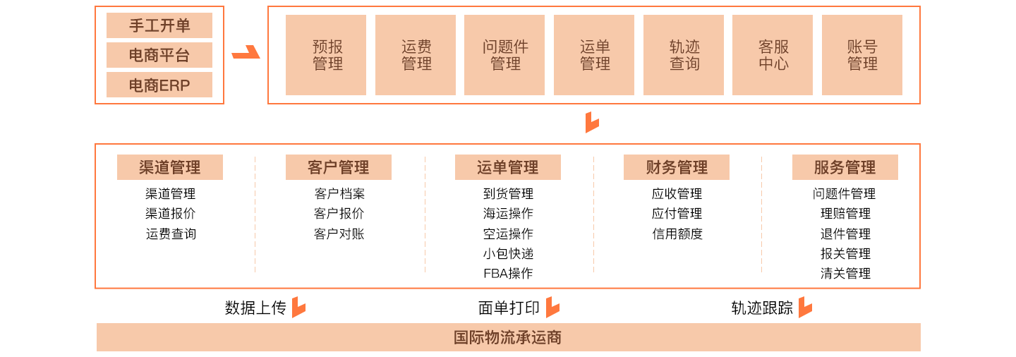 适配各类业务模式货代企业,为第三方跨境物流提供操作简便且功能强大的管理系统可应用于(海、空)专线,国际快递、海外云仓等业务场景,单单清晰,为您降本增效