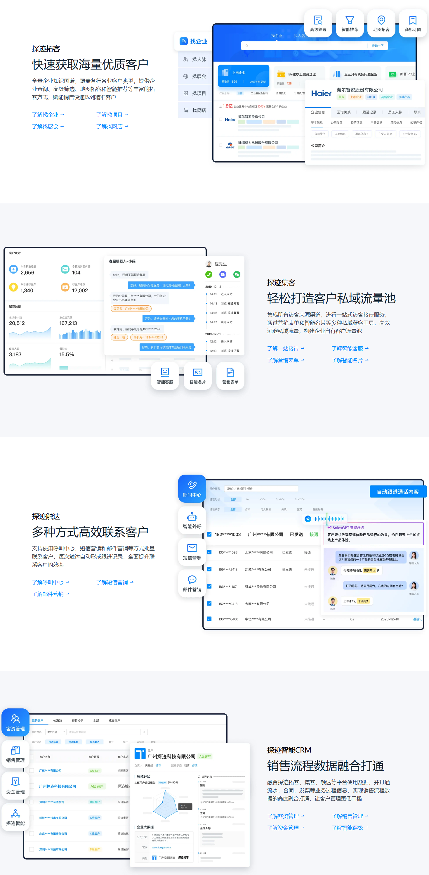 用AI和大数据为企业提供从线索挖掘、商机触达到客户管理的全流程智能销售服务,全面提升销售效率