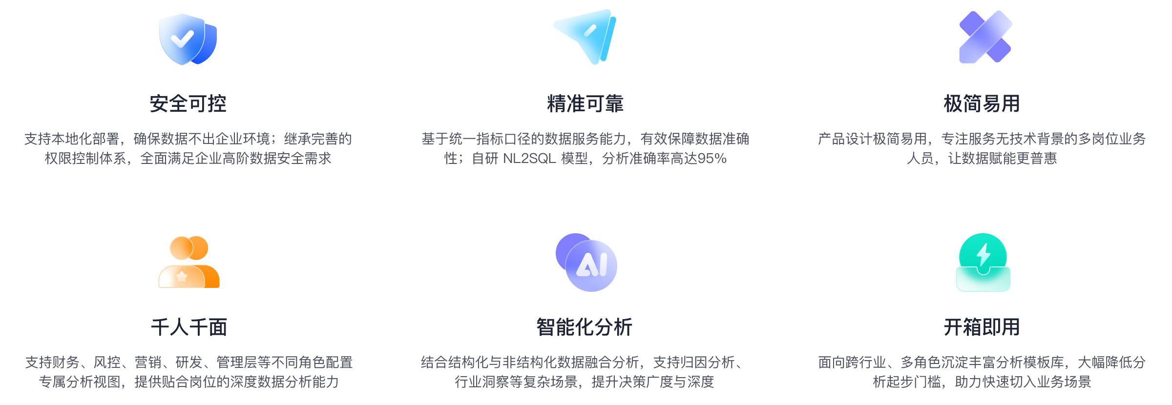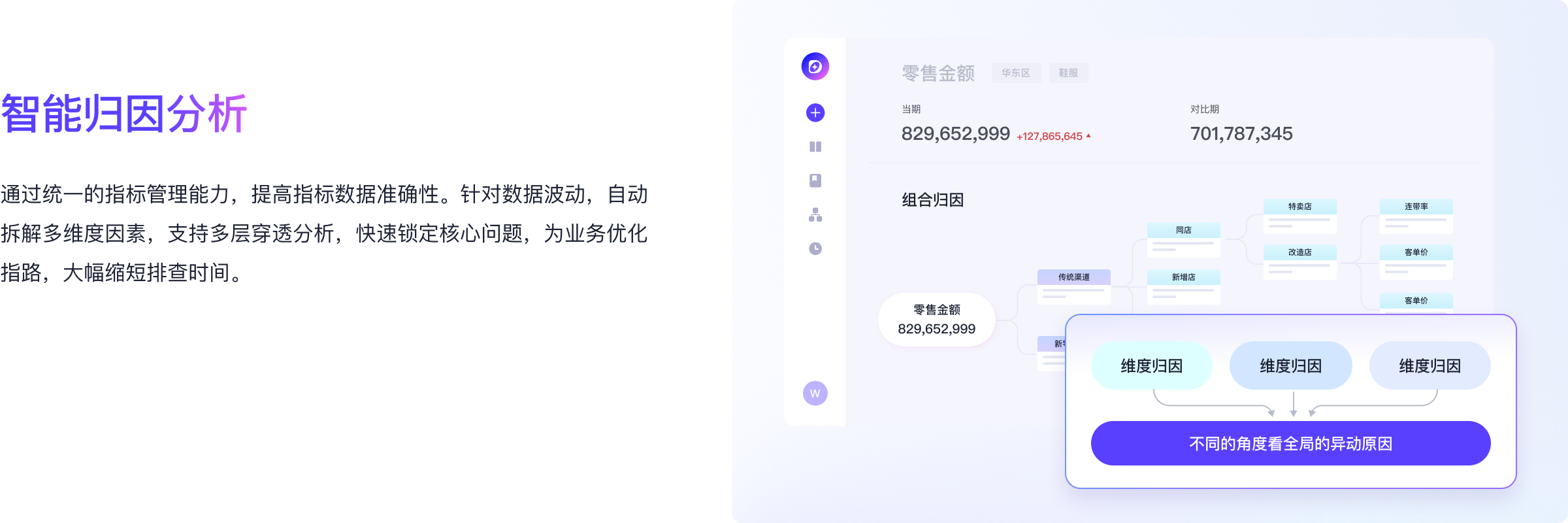 具备归因分析、复杂查询等能力,自动遍历数据维度,突破人工分析局限;