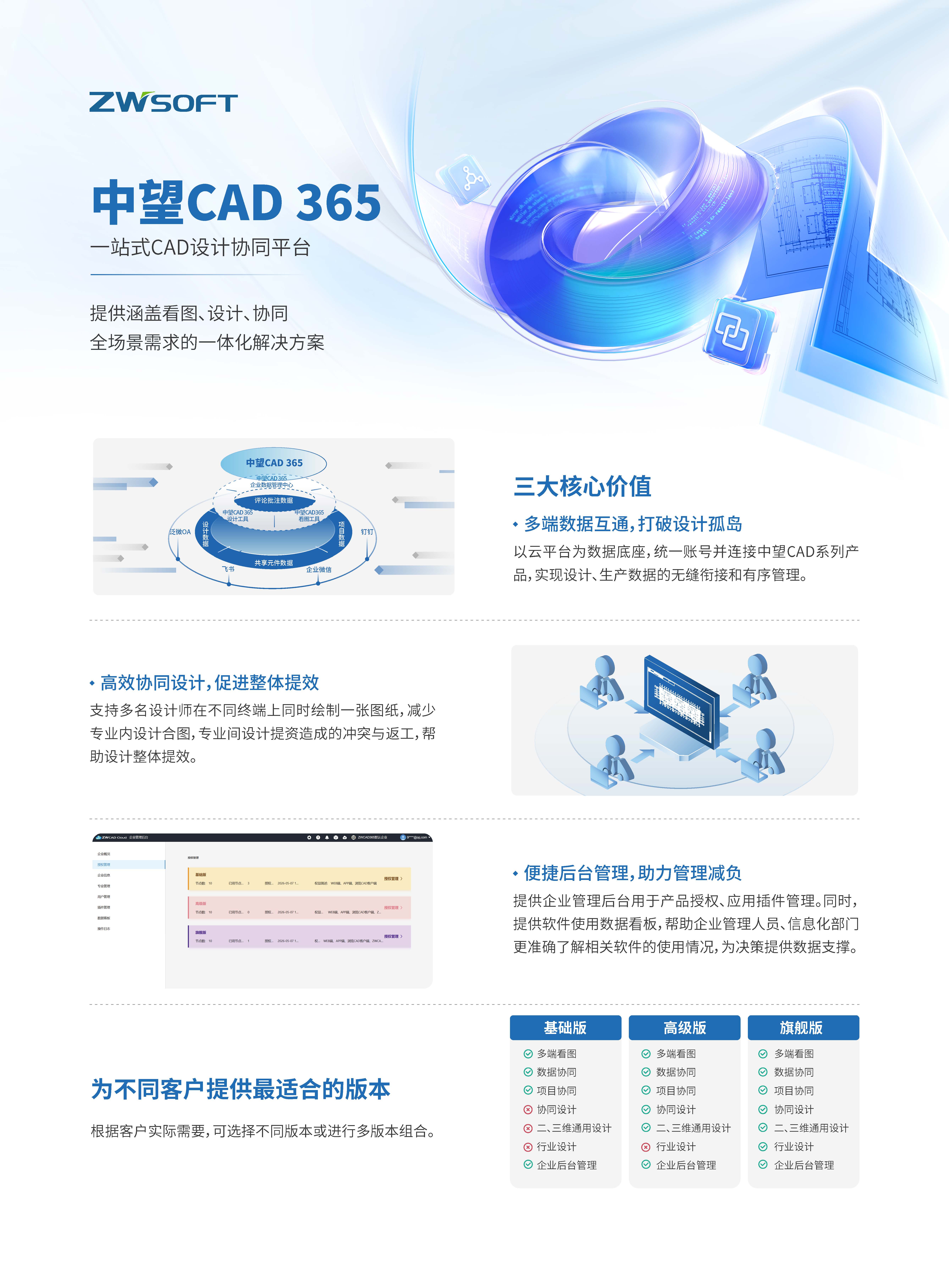 中望CAD 365是一款一站式CAD设计协同平台。涵盖设计、管理、协同、看图全场景需求的一体化解决方案。