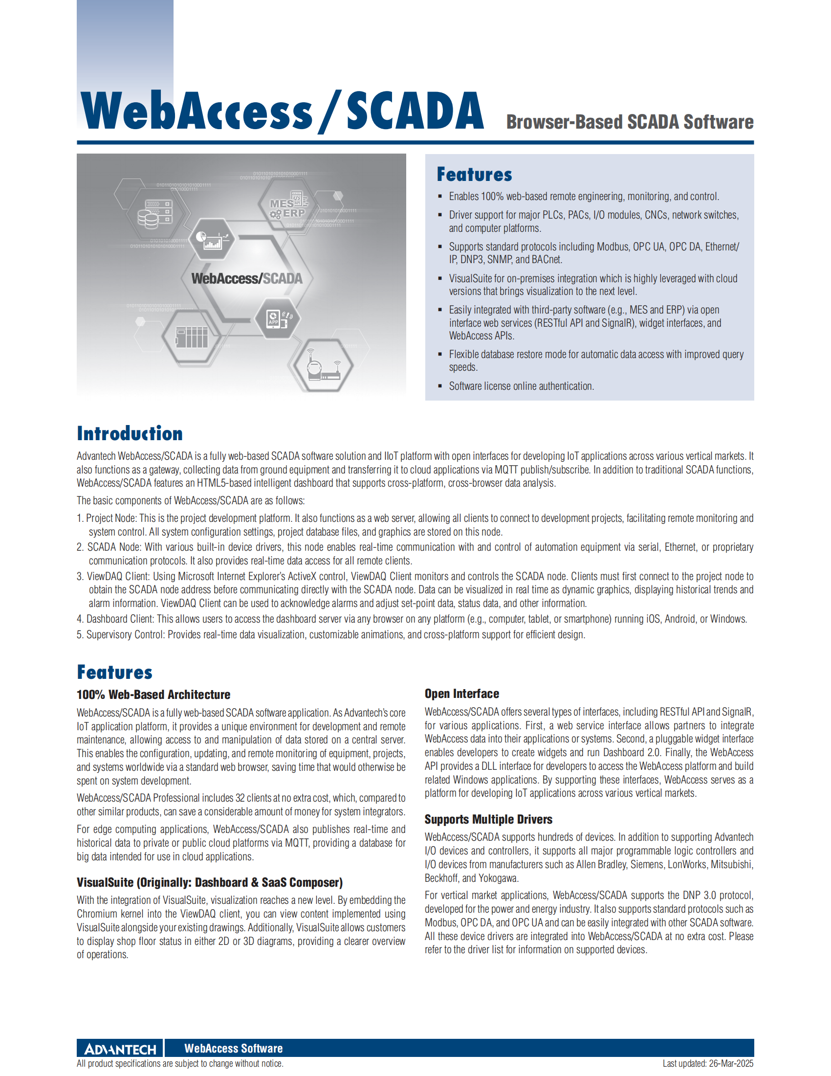 通过开放式界面web服务(RESTful API和SignalR)、小部件接口和WebAccess API,轻松与第三方软件(如MES和ERP)集成