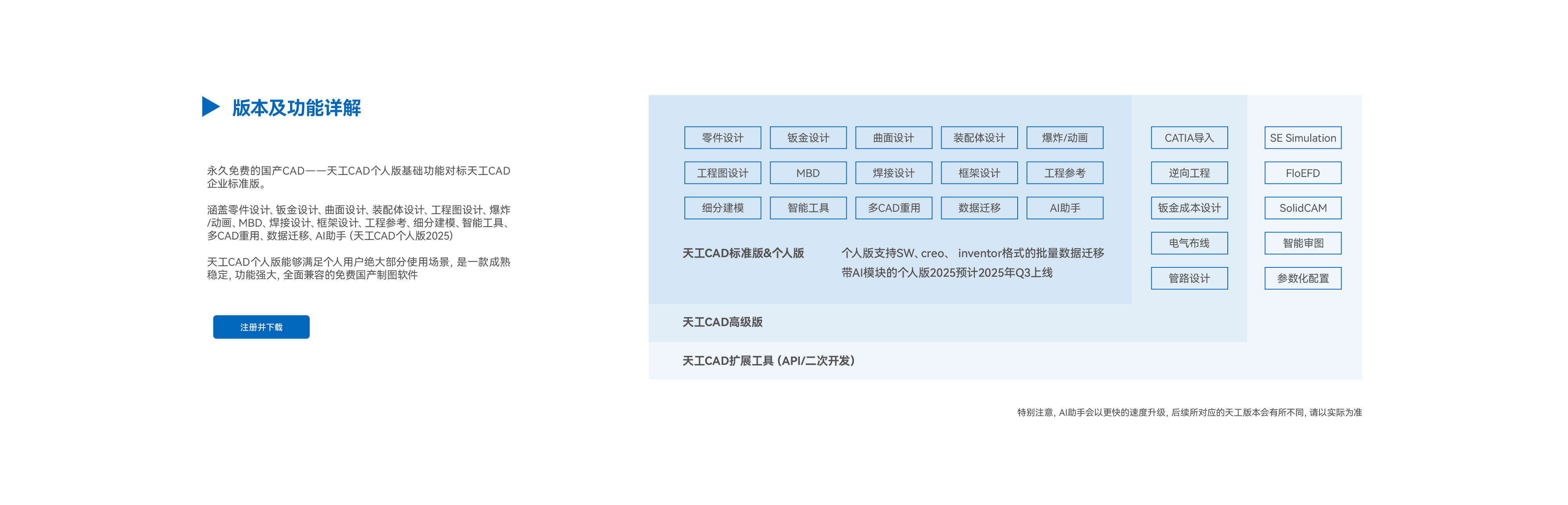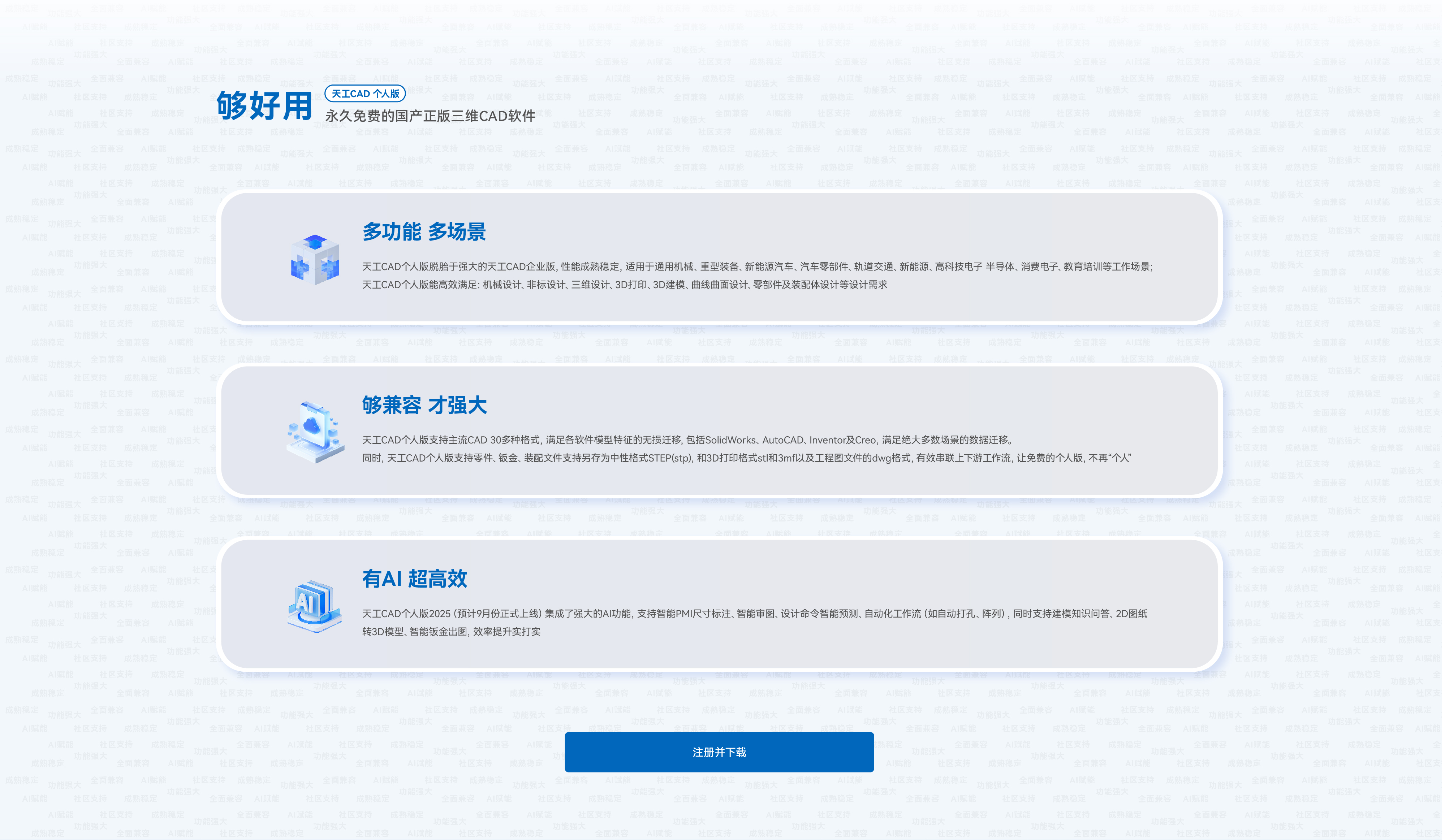 天工CAD个人版能够满足个人用户绝大部分使用场景,是一款成熟稳定,功能强大,全面兼容的免费国产制图软件
