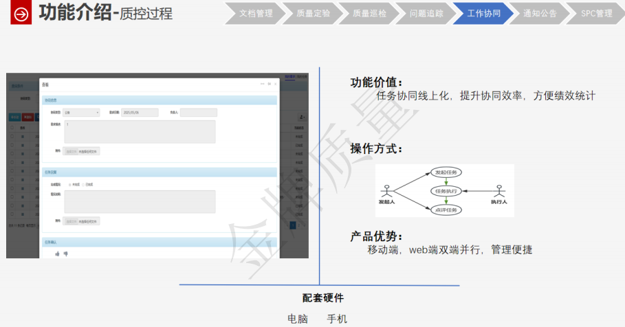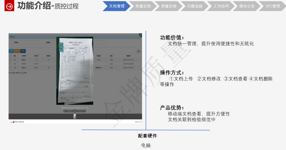质匠质检系统—提升整体30%以上效率,专为制造企业设计的质量数字化管理平台。系统集成检验管理、问题追踪、SPC分析、移动巡检等功能,支持OCR识别、蓝牙检具对接,实现检验效率提升10倍、报告制作时间缩短90%。支持多端协同,打通ERP/MES,推动质量问题闭环处理,帮助企业低成本、高效率构建数字化质检体系,实现质量数据透明化、管理决策智能化。