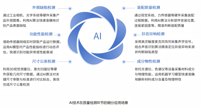 AI在质量检测领域的应用场景,涵盖了从外观缺陷检测到功能性能检测等多个方面。具体而言,AI技术在质量检测中的应用场景主要包括: