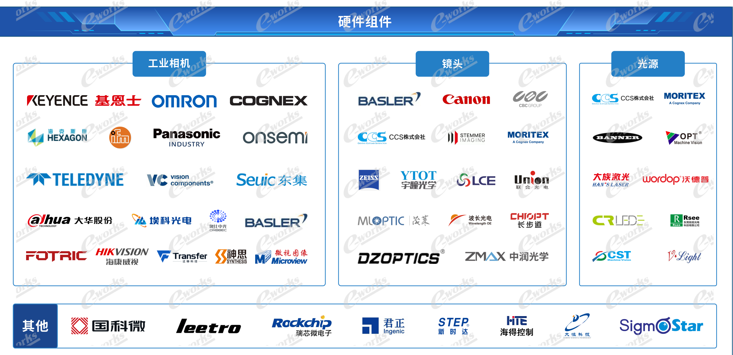 e-works精心编制的《工业机器视觉生态地图》,涵盖了产业链中、上游140余家企业的信息,按其主要业务领域分为工业相机、镜头、光源、软件等组件以及设备制造和系统集成几大类。这份图谱不仅帮助识别潜在合作伙伴和技术供应商,更促进跨行业合作,是投资者、企业及研究机构不可或缺的资源。